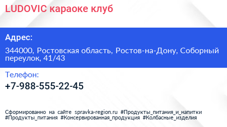 LUDOVIC, караоке-клуб по адресу 344000, Ростовская область, Ростов-на-Дону, Соборный переулок, 41/43 в дальнейшем Организация, размещена в следующих категориях: