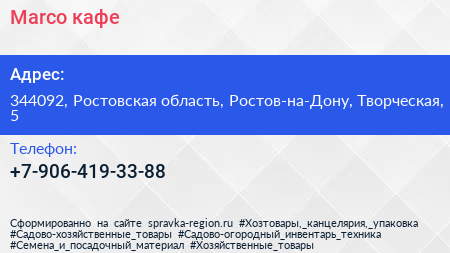 Marco, кафе по адресу 344092, Ростовская область, Ростов-на-Дону, Творческая, 5 в дальнейшем Организация, размещена в следующих категориях:
