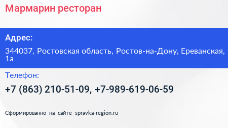 Мармарин, ресторан по адресу 344037, Ростовская область, Ростов-на-Дону, Ереванская, 1а в дальнейшем Организация, размещена в следующих категориях:
