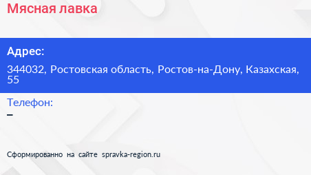 Мясная лавка по адресу 344032, Ростовская область, Ростов-на-Дону, Казахская, 55 в дальнейшем Организация, размещена в следующих категориях: