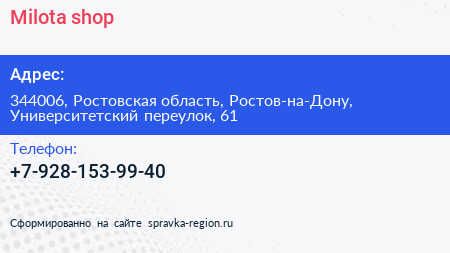 Milota shop по адресу 344006, Ростовская область, Ростов-на-Дону, Университетский переулок, 61 в дальнейшем Организация, размещена в следующих категориях: