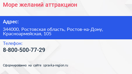 Море желаний, аттракцион по адресу 344000, Ростовская область, Ростов-на-Дону, Красноармейская, 105 в дальнейшем Организация, размещена в следующих категориях: