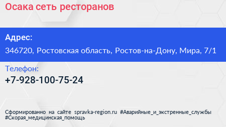 Осака, сеть ресторанов по адресу 346720, Ростовская область, Ростов-на-Дону, Мира, 7/1 в дальнейшем Организация, размещена в следующих категориях: