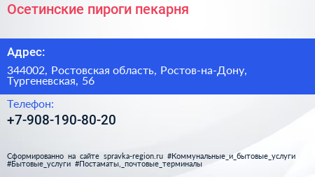 Осетинские пироги, пекарня по адресу 344002, Ростовская область, Ростов-на-Дону, Тургеневская, 56 в дальнейшем Организация, размещена в следующих категориях: