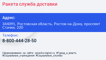 Ракета, служба доставки по адресу 344091, Ростовская область, Ростов-на-Дону, проспект Стачки, 220 в дальнейшем Организация, размещена в следующих категориях: