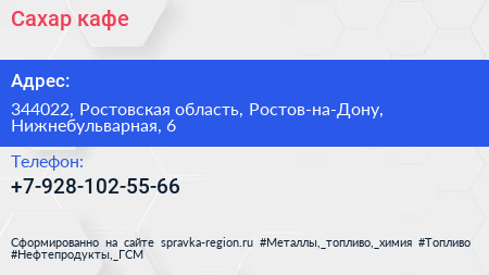 Сахар, кафе по адресу 344022, Ростовская область, Ростов-на-Дону, Нижнебульварная, 6 в дальнейшем Организация, размещена в следующих категориях: