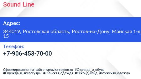 Sound Line по адресу 344019, Ростовская область, Ростов-на-Дону, Майская 1-я, 15 в дальнейшем Организация, размещена в следующих категориях: