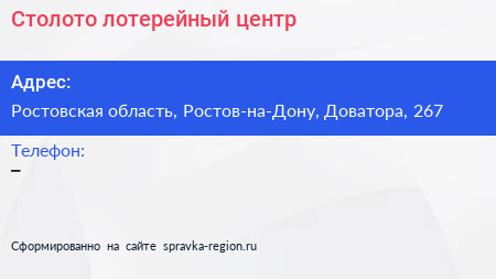 Столото, лотерейный центр по адресу Ростовская область, Ростов-на-Дону, Доватора, 267 в дальнейшем Организация, размещена в следующих категориях: