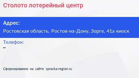 Столото, лотерейный центр по адресу Ростовская область, Ростов-на-Дону, Зорге, 41а киоск в дальнейшем Организация, размещена в следующих категориях: