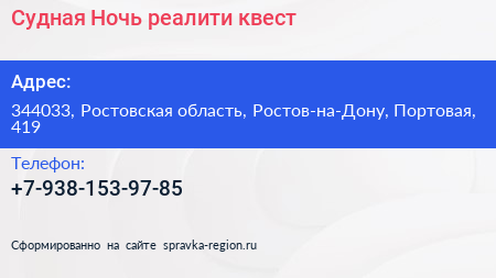 Судная Ночь, реалити-квест по адресу 344033, Ростовская область, Ростов-на-Дону, Портовая, 419 в дальнейшем Организация, размещена в следующих категориях: