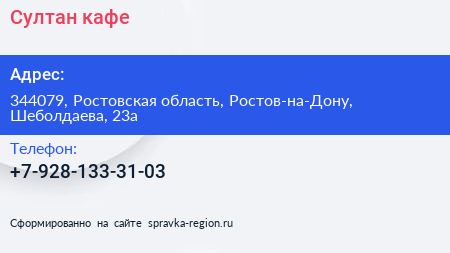 Султан, кафе по адресу 344079, Ростовская область, Ростов-на-Дону, Шеболдаева, 23а в дальнейшем Организация, размещена в следующих категориях: