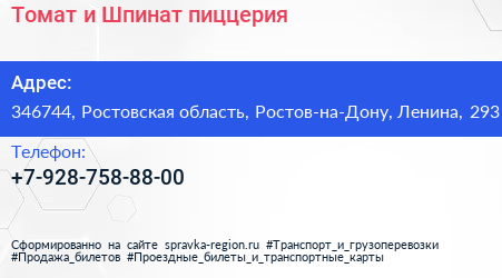 Томат и Шпинат, пиццерия по адресу 346744, Ростовская область, Ростов-на-Дону, Ленина, 293 в дальнейшем Организация, размещена в следующих категориях: