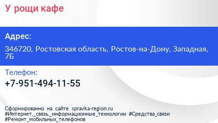 У рощи, кафе по адресу 346720, Ростовская область, Ростов-на-Дону, Западная, 7Б в дальнейшем Организация, размещена в следующих категориях: