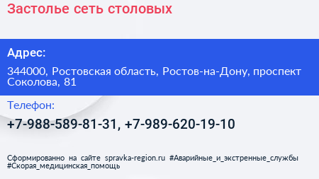 Застолье, сеть столовых по адресу 344000, Ростовская область, Ростов-на-Дону, проспект Соколова, 81 в дальнейшем Организация, размещена в следующих категориях: