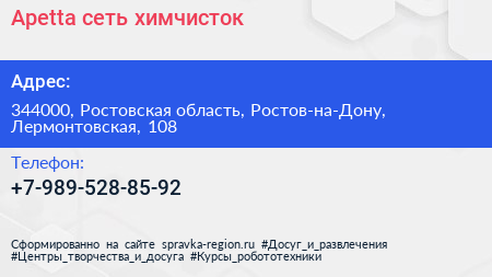 Apetta, сеть химчисток по адресу 344000, Ростовская область, Ростов-на-Дону, Лермонтовская, 108 в дальнейшем Организация, размещена в следующих категориях: