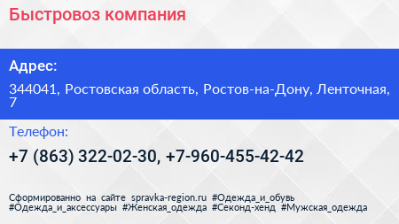 Быстровоз, компания по адресу 344041, Ростовская область, Ростов-на-Дону, Ленточная, 7 в дальнейшем Организация, размещена в следующих категориях: