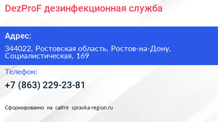 DezProF, дезинфекционная служба по адресу 344022, Ростовская область, Ростов-на-Дону, Социалистическая, 169 в дальнейшем Организация, размещена в следующих категориях: