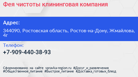 Фея чистоты, клининговая компания по адресу 344090, Ростовская область, Ростов-на-Дону, Жмайлова, 4г в дальнейшем Организация, размещена в следующих категориях: