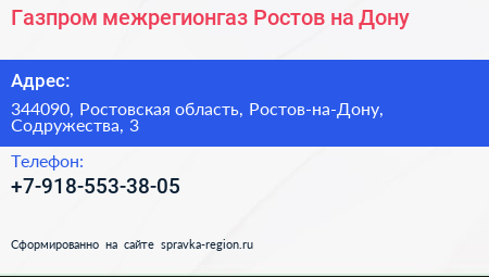 Газпром межрегионгаз Ростов-на-Дону по адресу 344090, Ростовская область, Ростов-на-Дону, Содружества, 3 в дальнейшем Организация, размещена в следующих категориях: