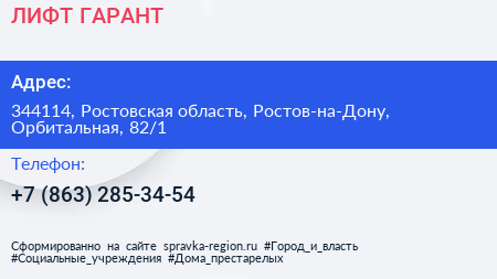 ЛИФТ-ГАРАНТ по адресу 344114, Ростовская область, Ростов-на-Дону, Орбитальная, 82/1 в дальнейшем Организация, размещена в следующих категориях: