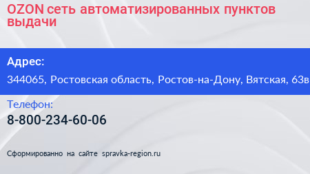 OZON, сеть автоматизированных пунктов выдачи по адресу 344065, Ростовская область, Ростов-на-Дону, Вятская, 63в в дальнейшем Организация, размещена в следующих категориях: