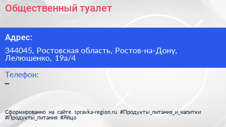 Общественный туалет по адресу 344045, Ростовская область, Ростов-на-Дону, Лелюшенко, 19а/4 в дальнейшем Организация, размещена в следующих категориях: