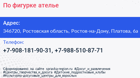 По-фигурке, ателье по адресу 346720, Ростовская область, Ростов-на-Дону, Платова, 6а в дальнейшем Организация, размещена в следующих категориях: