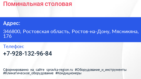 Поминальная столовая по адресу 346800, Ростовская область, Ростов-на-Дону, Мясникяна, 176 в дальнейшем Организация, размещена в следующих категориях: