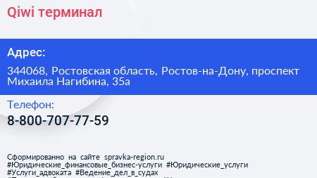 Qiwi, терминал по адресу 344068, Ростовская область, Ростов-на-Дону, проспект Михаила Нагибина, 35а в дальнейшем Организация, размещена в следующих категориях: