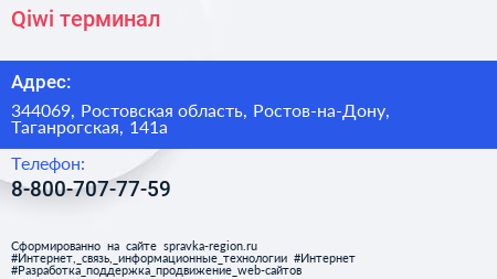 Qiwi, терминал по адресу 344069, Ростовская область, Ростов-на-Дону, Таганрогская, 141а в дальнейшем Организация, размещена в следующих категориях: