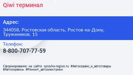 Qiwi, терминал по адресу 344058, Ростовская область, Ростов-на-Дону, Тружеников, 15 в дальнейшем Организация, размещена в следующих категориях: