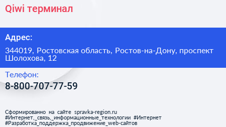 Qiwi, терминал по адресу 344019, Ростовская область, Ростов-на-Дону, проспект Шолохова, 12 в дальнейшем Организация, размещена в следующих категориях: