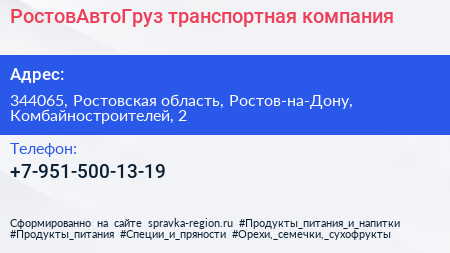 РостовАвтоГруз, транспортная компания по адресу 344065, Ростовская область, Ростов-на-Дону, Комбайностроителей, 2 в дальнейшем Организация, размещена в следующих категориях:
