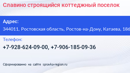 Славино, строящийся коттеджный поселок по адресу 344011, Ростовская область, Ростов-на-Дону, Катаева, 186 в дальнейшем Организация, размещена в следующих категориях: