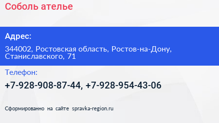 Соболь, ателье по адресу 344002, Ростовская область, Ростов-на-Дону, Станиславского, 71 в дальнейшем Организация, размещена в следующих категориях: