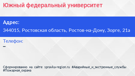 Южный федеральный университет по адресу 344015, Ростовская область, Ростов-на-Дону, Зорге, 21а в дальнейшем Организация, размещена в следующих категориях: