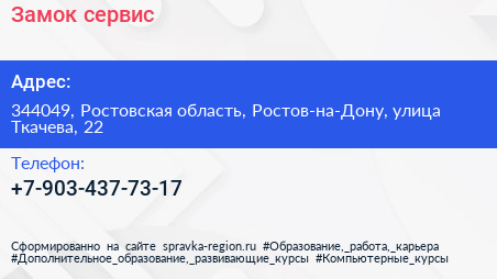 Замок-сервис по адресу 344049, Ростовская область, Ростов-на-Дону, улица Ткачева, 22 в дальнейшем Организация, размещена в следующих категориях: