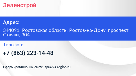 Зеленстрой по адресу 344091, Ростовская область, Ростов-на-Дону, проспект Стачки, 304 в дальнейшем Организация, размещена в следующих категориях: