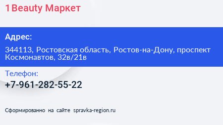 1 Beauty-Маркет по адресу 344113, Ростовская область, Ростов-на-Дону, проспект Космонавтов, 32в/21в в дальнейшем Организация, размещена в следующих категориях: