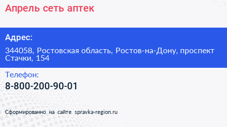 Апрель, сеть аптек по адресу 344058, Ростовская область, Ростов-на-Дону, проспект Стачки, 154 в дальнейшем Организация, размещена в следующих категориях: