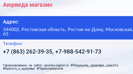 Аюрведа, магазин по адресу 344002, Ростовская область, Ростов-на-Дону, Московская, 63 в дальнейшем Организация, размещена в следующих категориях: