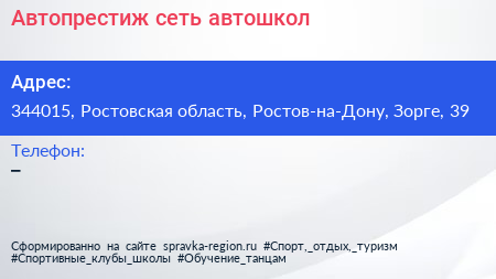 Автопрестиж, сеть автошкол по адресу 344015, Ростовская область, Ростов-на-Дону, Зорге, 39 в дальнейшем Организация, размещена в следующих категориях: