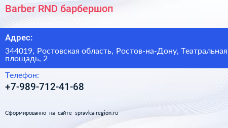 Barber RND, барбершоп по адресу 344019, Ростовская область, Ростов-на-Дону, Театральная площадь, 2 в дальнейшем Организация, размещена в следующих категориях: