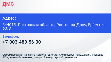 ДМС по адресу 344015, Ростовская область, Ростов-на-Дону, Ерёменко, 60/9 в дальнейшем Организация, размещена в следующих категориях: