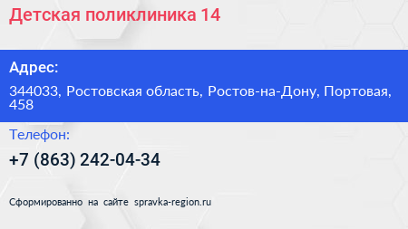 Детская поликлиника №14 по адресу 344033, Ростовская область, Ростов-на-Дону, Портовая, 458 в дальнейшем Организация, размещена в следующих категориях: