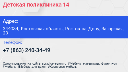 Детская поликлиника №14 по адресу 344034, Ростовская область, Ростов-на-Дону, Загорская, 23 в дальнейшем Организация, размещена в следующих категориях:
