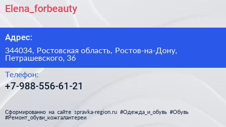 Elena_forbeauty по адресу 344034, Ростовская область, Ростов-на-Дону, Петрашевского, 36 в дальнейшем Организация, размещена в следующих категориях: