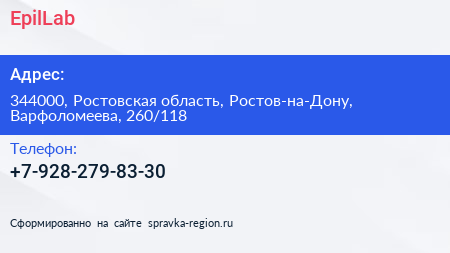EpilLab по адресу 344000, Ростовская область, Ростов-на-Дону, Варфоломеева, 260/118 в дальнейшем Организация, размещена в следующих категориях: