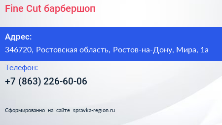 Fine Cut, барбершоп по адресу 346720, Ростовская область, Ростов-на-Дону, Мира, 1а в дальнейшем Организация, размещена в следующих категориях: