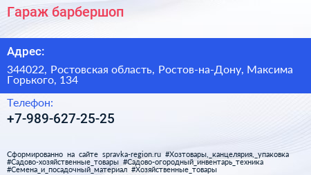 Гараж, барбершоп по адресу 344022, Ростовская область, Ростов-на-Дону, Максима Горького, 134 в дальнейшем Организация, размещена в следующих категориях:
